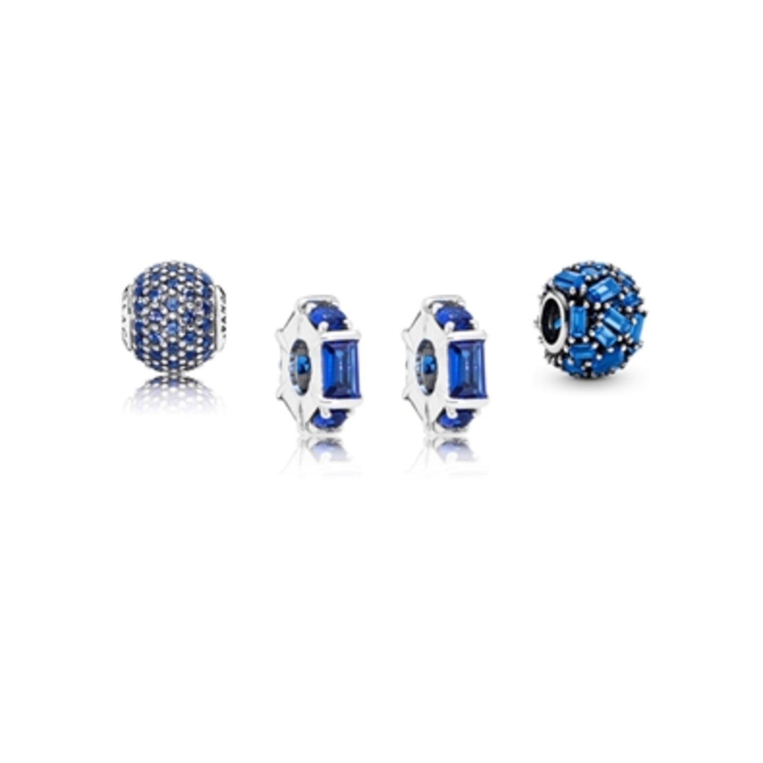 This icy blue bundle is cool all year round. Perfect for winter celebrations, but elegant and neutral to wear year round. This bundle includes 2 sculptured ice spacers, a vivid mosaic charm with different shaped stones, and a brilliant Pave Lights charm with white and blue stones. Start your bracelet with this set or add to your Pandora collection; makes a great gift for the person who has it all...including the Pandora bracelet!