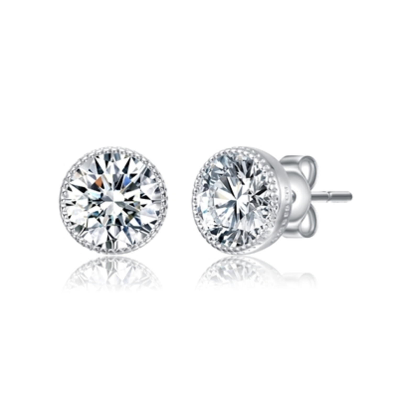 CZ RHODIUM ROUND STUD EARRINGS, CLEAR