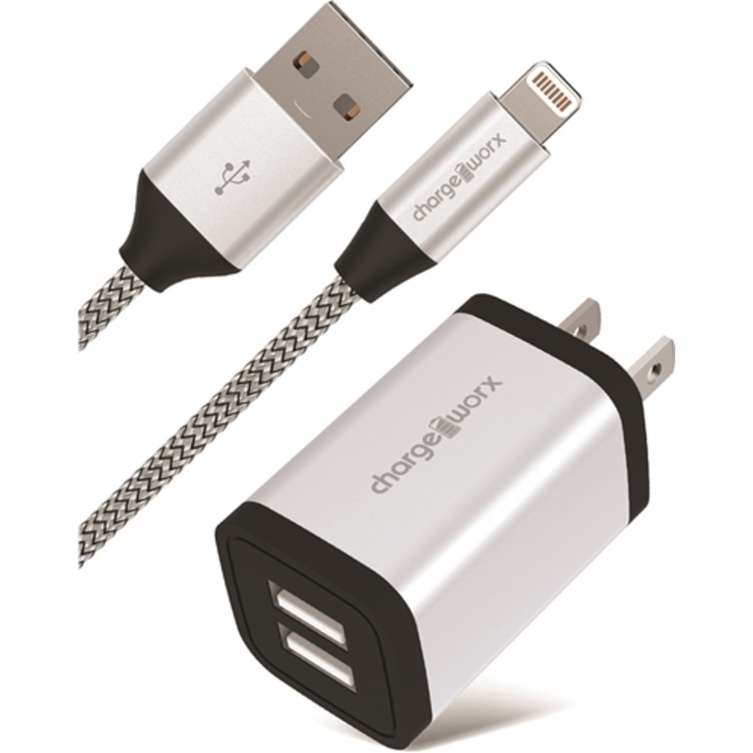 LIGHTENING CABLE W/ DUAL USB CHARGER, SILVER