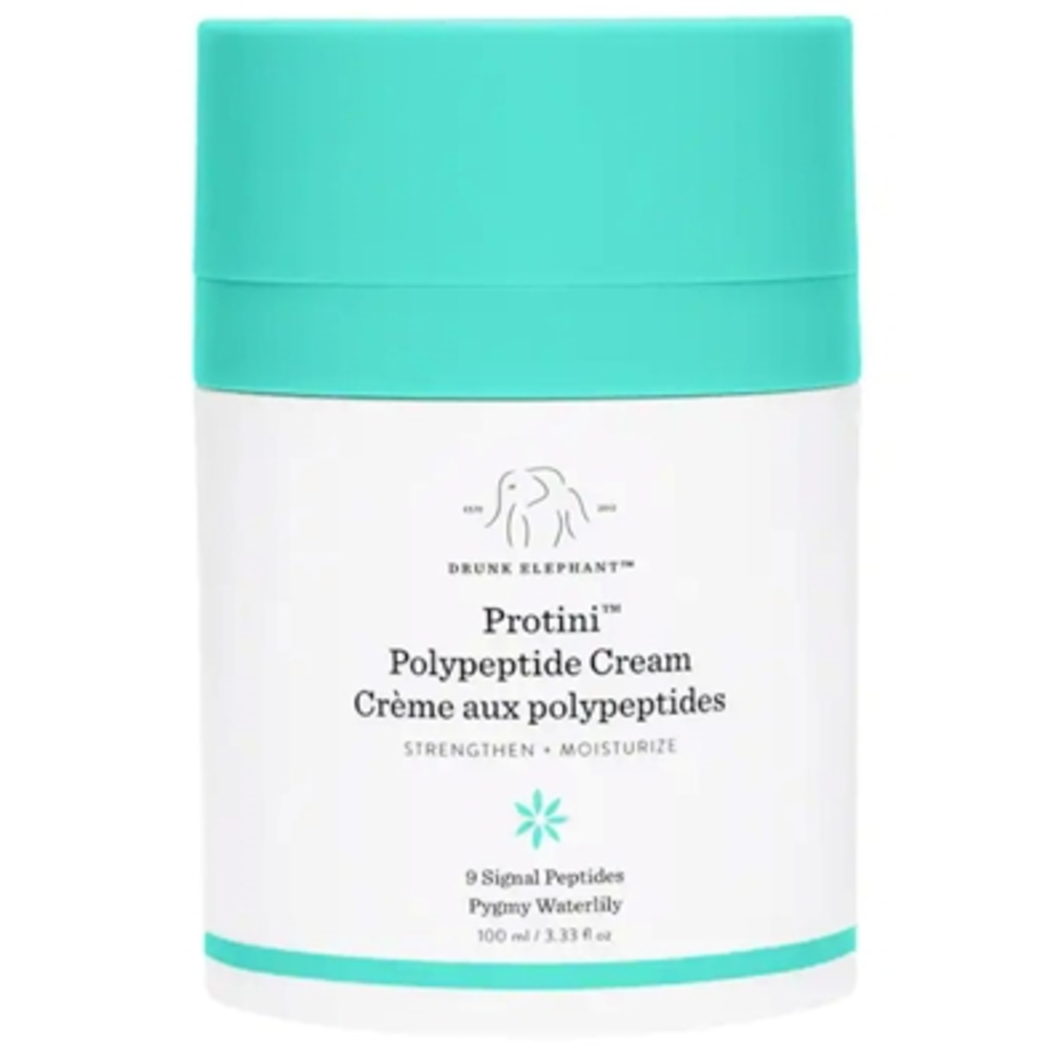 Drunk Elephant's Protini Polypeptide Firming Moisturizer combines signal peptides, growth factors, supportive amino acids, and pygmy waterlily for immediate improvement in the appearance of skin's tone, texture, and firmness. This product delivers daily moisture in a lightweight gel-cream. Visibly firms skin and supports healthy collagen production, restoring bounce. Reduces the appearance of texture, fine lines, wrinkles, and sun damage.Formulated at a skin-friendly pH of 4.0 and 100% free of essential oils, silicones, fragrance/dyes, and solvent alcohols. Apply morning and night to a clean, dry face. Use daily or in rotation with other Drunk Elephant moisturizers.