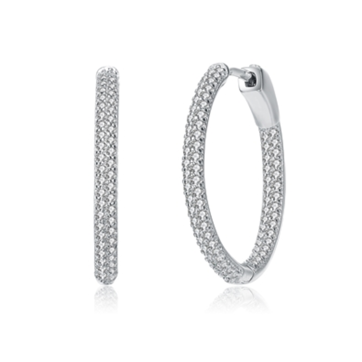 ENCRUSTED THIN CZ HOOP EARRINGS, CLEAR, 0.98