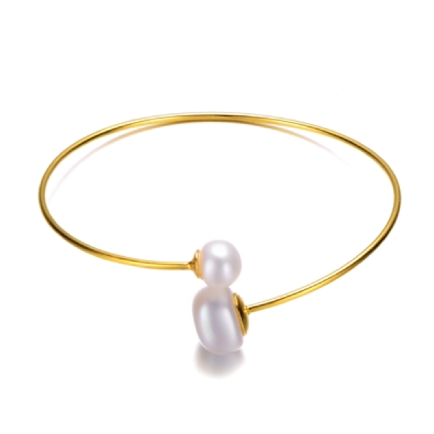 STERLING SILVER GOLD PLATED PEARL BANGLE, GOLD, 7.25"