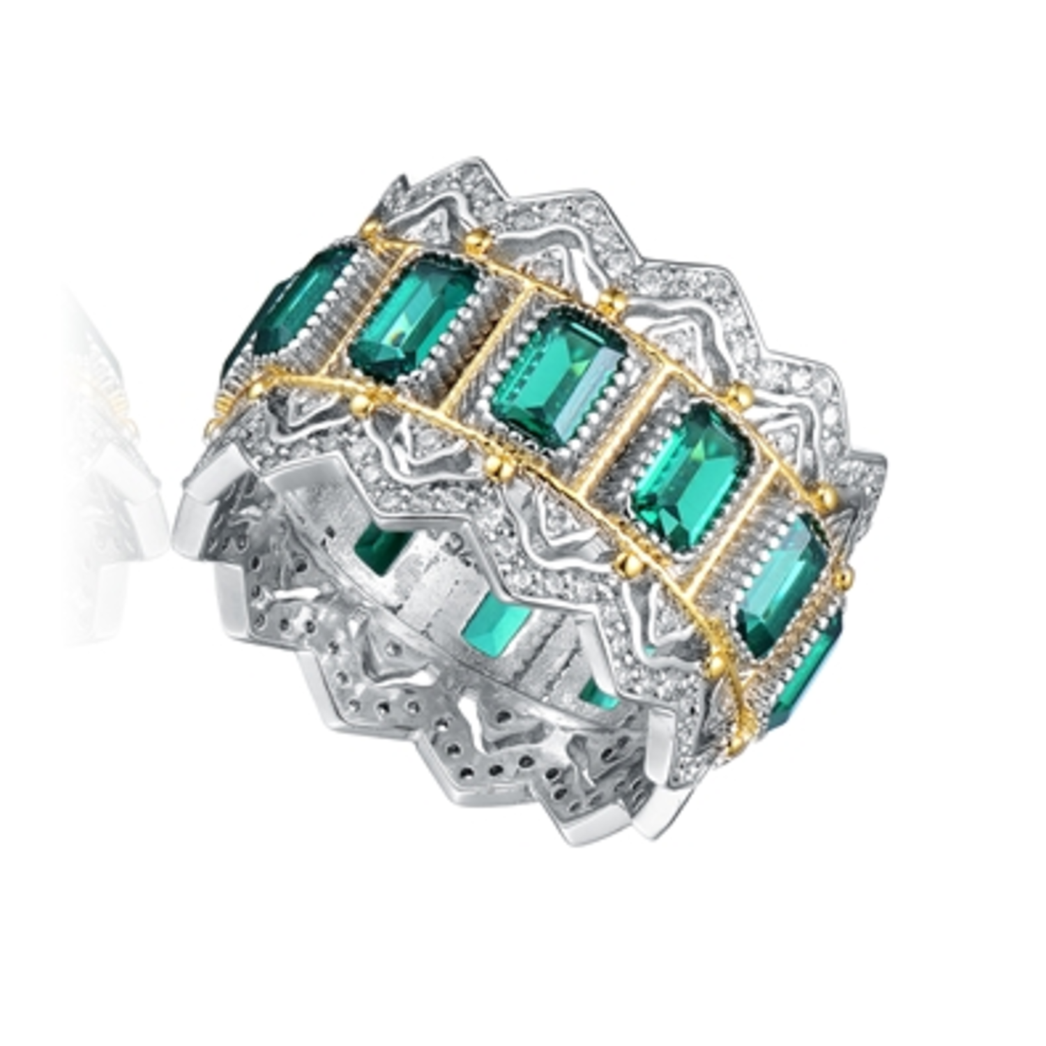 Step into sophistication with this stylish ring, crafted in radiant, set with radiant CZ stones. A bold and radiant choice for standout moments. Blends classic elegance with modern flair. Crafted to captivate with every detail.