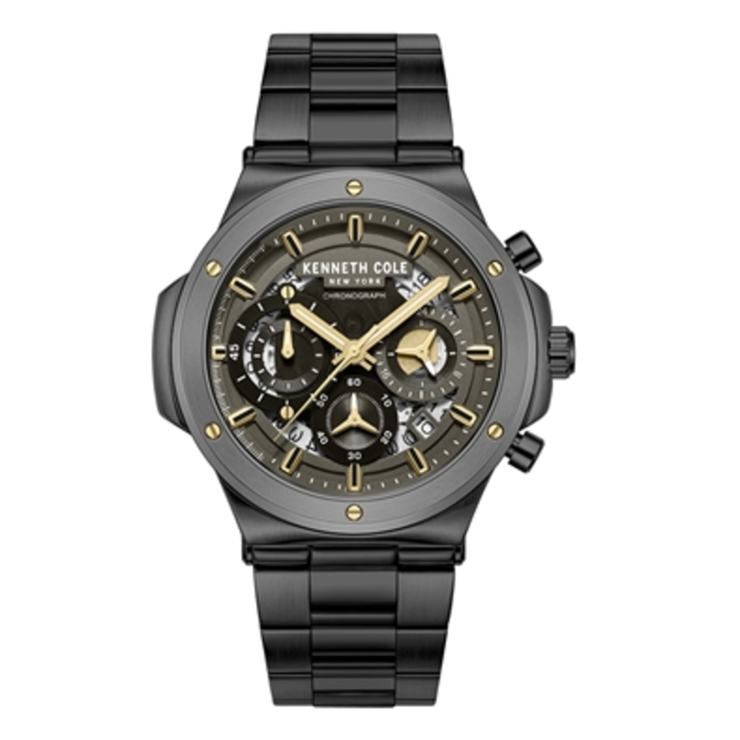 Exuding sophistication with its sleek dial and refined aesthetics, this chronograph watch embodies quiet confidence. Designed for a new era of style, it's versatile enough to pair with a suit and casual enough for everyday wear. The contrasting details on the black dial, coupled with its opaque finish, offer subtle glimpses of the date disc, adding an air of intrigue. With its bold pushers, the design brings a modern twist to the classic chronograph. The ion-plated black stainless steel black completes the look, lending a contemporary, edgy finish.