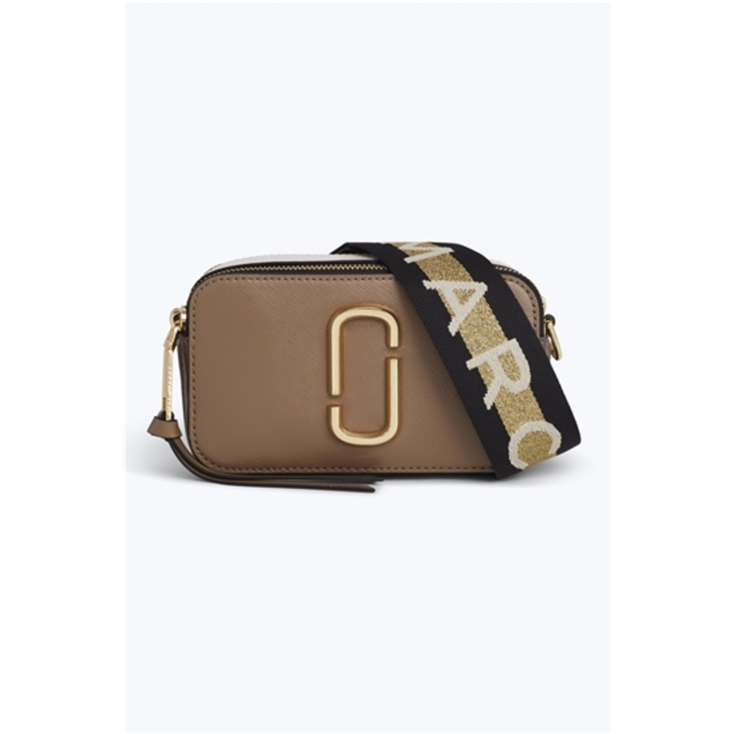 Small camera-style bag in Saffiano leather with an adjustable, logo cross body strap. Features: Double-J hardware. Two zip sections. Interior and exterior slip pockets. Removable and adjustable webbing strap.