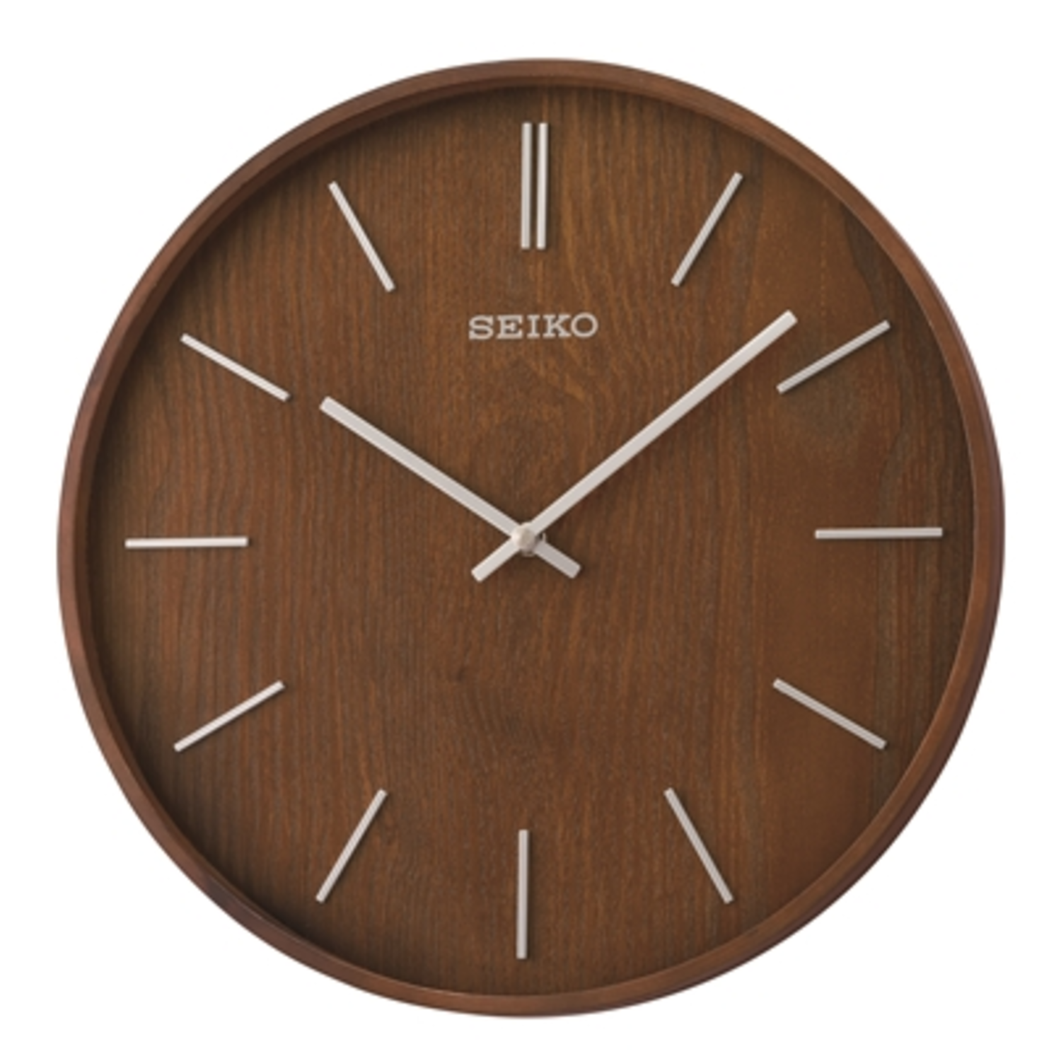 Maddox is a 13" wooden wall clock in brown ash veneer. You'll love the silver 3D numerals and open airy feel to this clock as no cover is necessary on this ultra chic piece. This clock features clean-lined essentials that are as good looking as they are functional. This stylish clock's urban design is a hip touch on any wall, very "Crate and Barrel" and "IKEA".