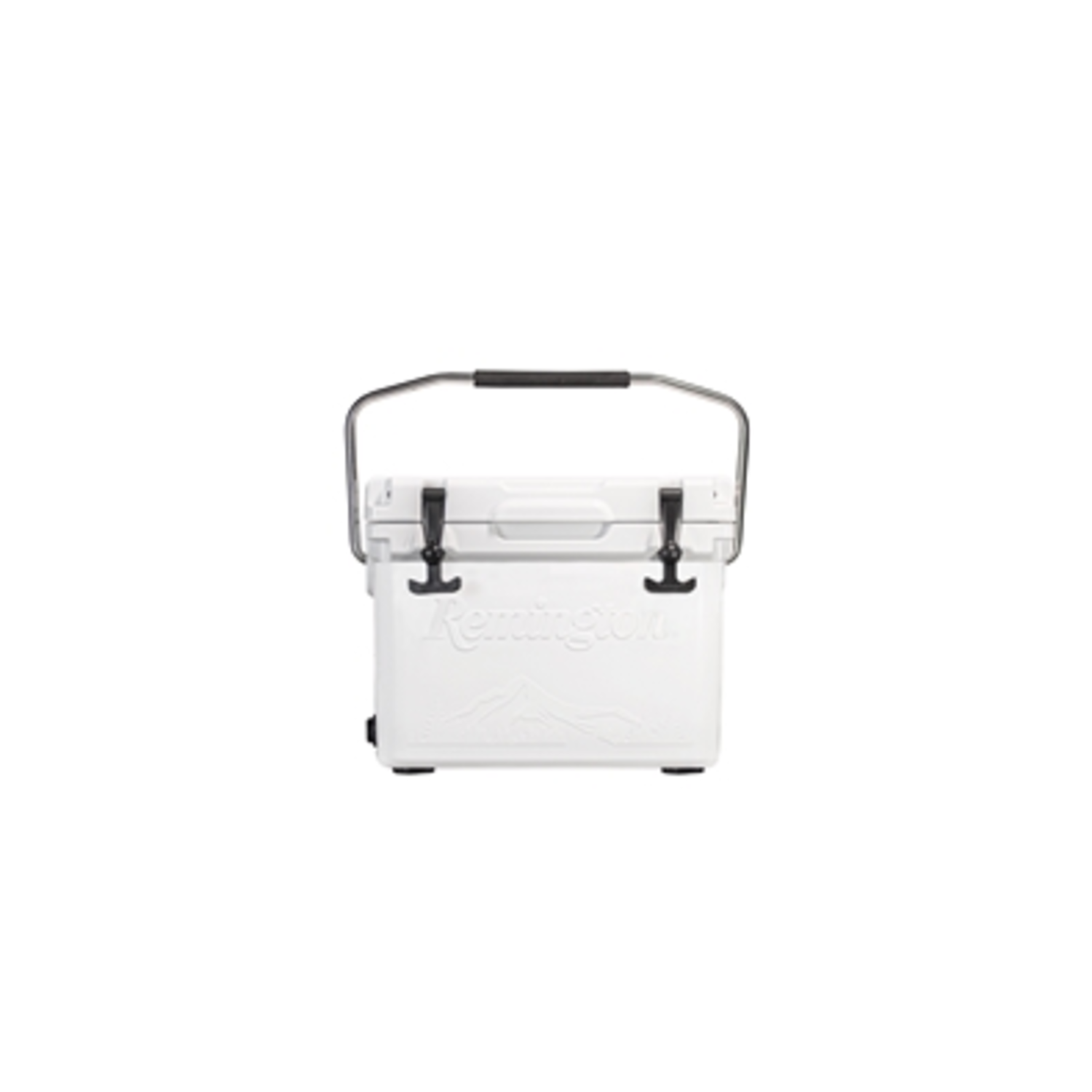 The Remington 25 Roto-molded Cooler is ideal for the occasions that call for packing and storing plenty of cold food and beverage while on the go. Double-wall Rotomolded Construction, 5.5 Gallons, 26.4 Quarts, Heavy Duty rubber latches and an o-ring barrier provide and air tight seal, Integrated lid hinge allows for easy open/close, Ergonomic easy carry stainless handle with rubber overmolding, Lock-down corners, Anti-slide foot pads prevent spillage during transport, Lightweight design, Rapid flow drain system , Ice Retention 3-4+Days.