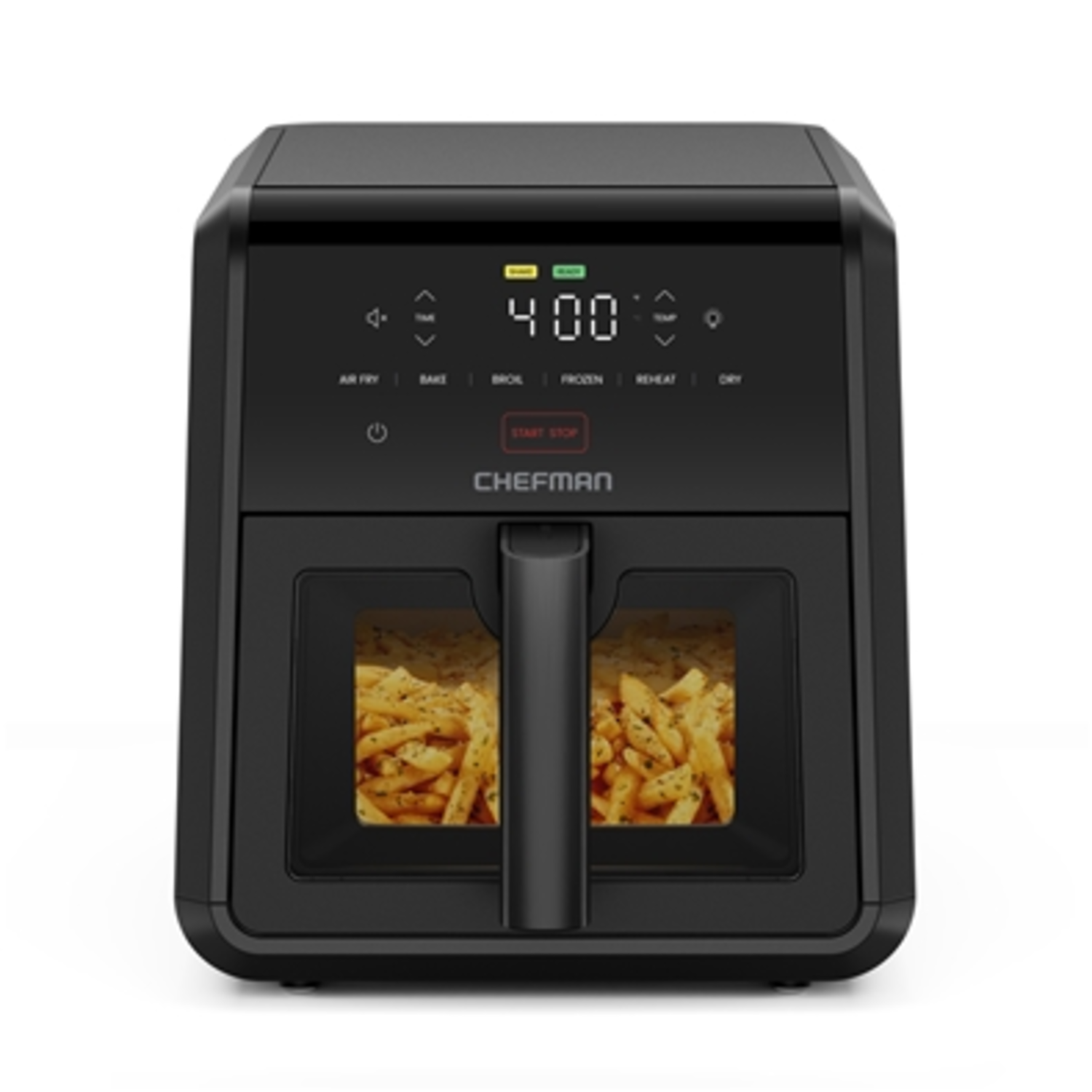 Powerful DC motor crisps, bakes and fries up to 40% faster than conventional air fryers; Frozen function is a unique two-step process that defrosts, then switches to cook mode; 6 cooking functions with a wide temperature range; Automatic shake reminders halfway through cooking time