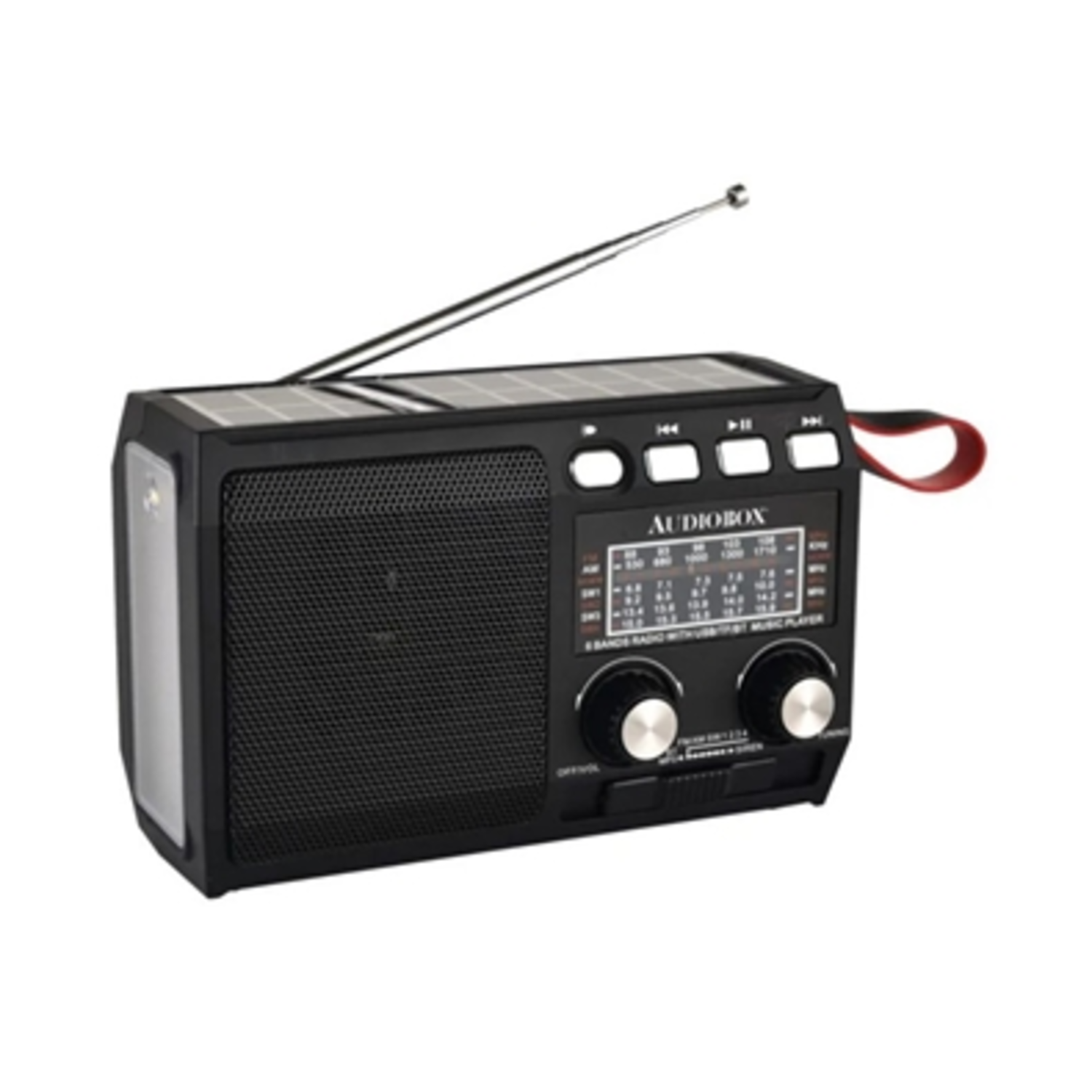 The AUDIOBOX Solar Powered Radio with Hand Crank is a versatile and practical device designed for emergency preparedness and outdoor adventures. Equipped with a solar panel and hand crank, it ensures you always have access to power, even in remote locations. The built-in power bank allows you to charge your cellphone, providing a reliable backup during emergencies. Additionally, the radio features an integrated flashlight for illumination in dark environments. With its durable design and multiple power options, this compact radio is perfect for camping, hiking, or any situation where power and communication are essential.