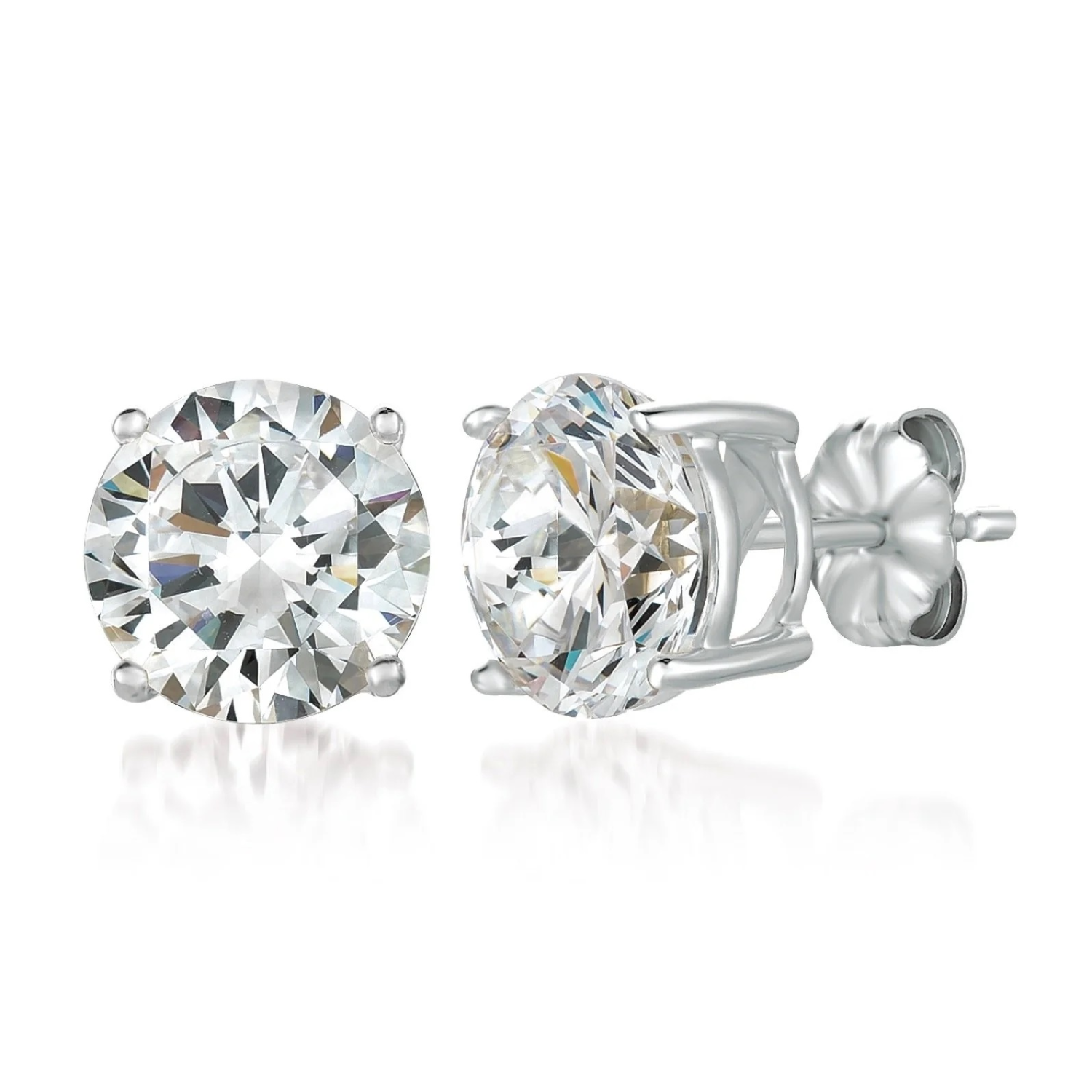 Solitaire Brilliant Stud Earrings Finished in Pure Platinum - 6.0 Carat, Dimensions: 8.89 mm Wide, Finished In Pure Platinum, 0.925 Precious Sterling Silver, 6.00 Carat Total Weight, Carat total weight based on Diamond equivalent and Handset with Flawless Cubic Zirconia.
