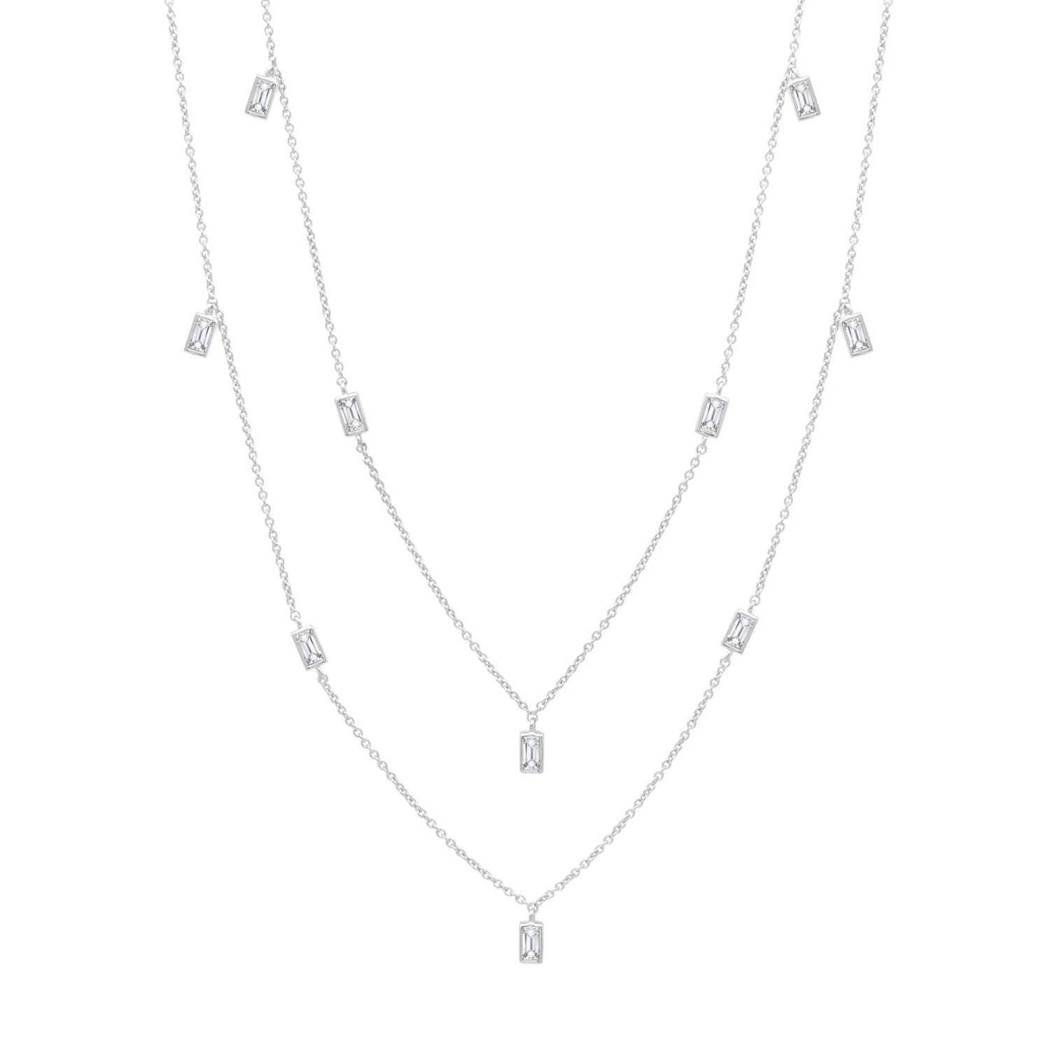 Prism Baguette 36 inches Necklace finished in Pure Platinum, Dimensions: 5mm Long X 3mm Wide, Finished In Pure Platinum and 0.925 Precious Sterling Silver.