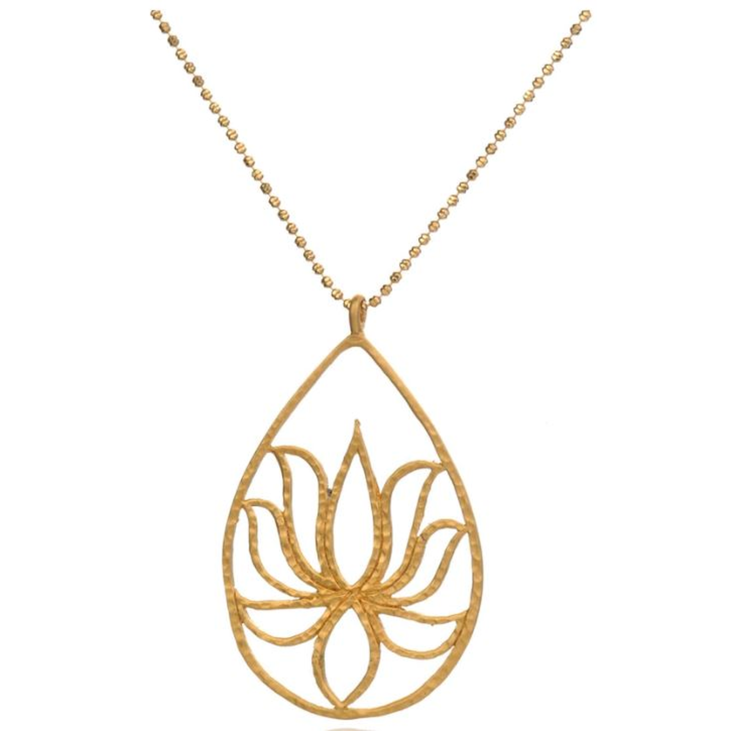 SATYA GOLD TEARDROP LOTUS 24 INCH NECKLACE